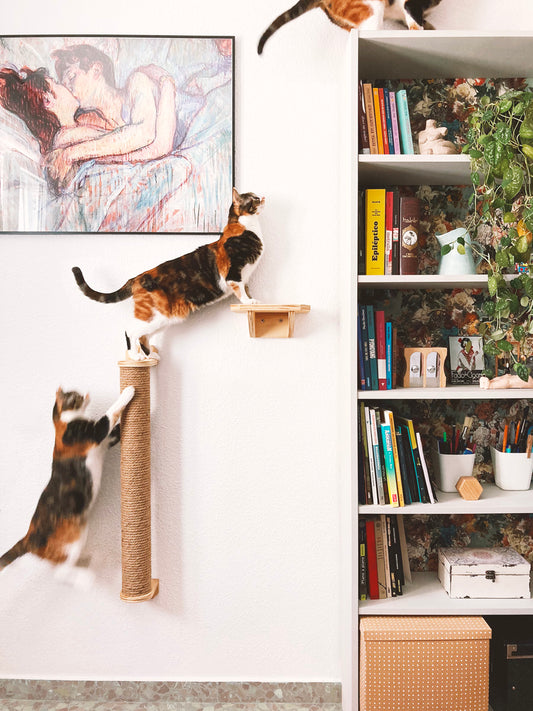 Explora nuestras ideas para crear un parque de pared para gatos y gatificar una pared con soluciones únicas, sostenibles y hechas a mano.